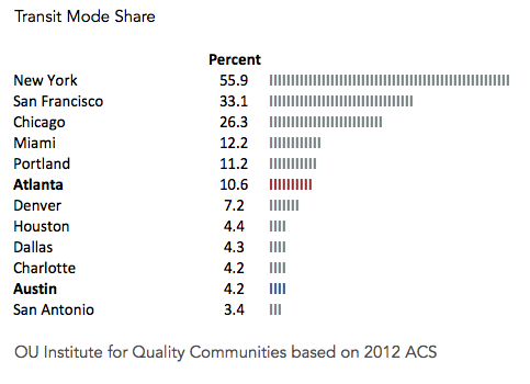 Oft-cited research (PDF) by Brian Taylor et al. tackles this problem and finds that 74% of the variation across US metros can be explained by external factors such as population density, median income, Democratic-lean, and related levels of car-independence (e.g. bike, walk commutes).