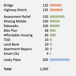 Obviously, there are devilish details for each of the items I am pitching; some of my ideas might require creativity given the constraints on municipalities imposed by the legislature. Certainly those should be discussed. But the more important question is whether we think that the Council proposal is the best way to spend a billion dollars to solve our needs?