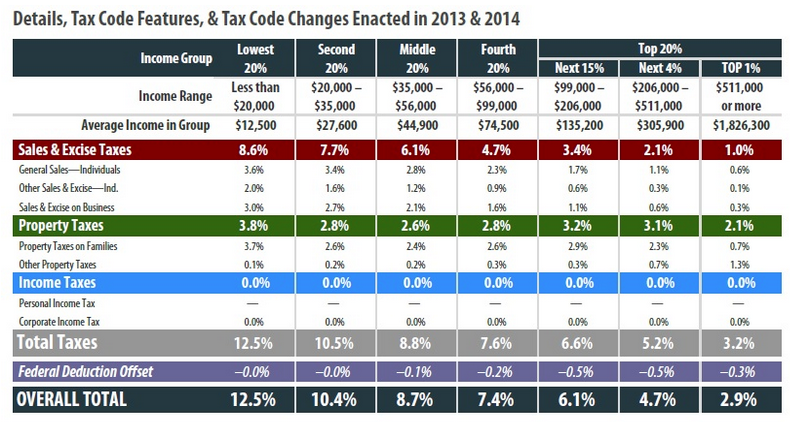 In regards to sales tax impacts for a “typical” resident, it is something we have discussed internally at length for years. Unfortunately, the data does not exist to track calculate this in an objective and defensible manner. [Luckily, the Institute on Taxation and Economic Policy already provides an estimate. Here's a chart from their Texas-specific report: