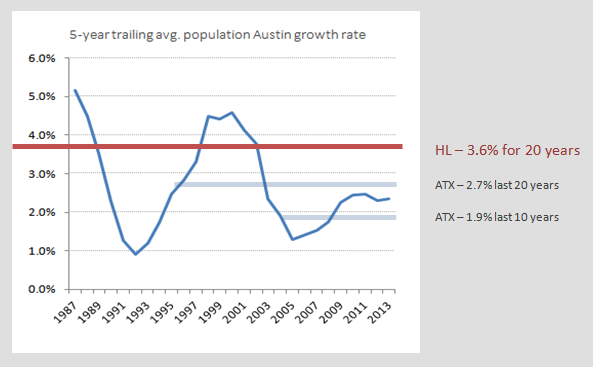 Basically, Project Connect's modeling spits out that Highland (which is already fairly developed at 6,000 folks per square mile) would grow at a blistering 3.6% rate consecutively for 20 years(!). Austin's long-term growth rates are getting smaller as the City becomes larger; and obviously, much of the growth is in the periphery of the City where land development is much easier. The residential growth contributed by the Highland Mall redevelopment (a.k.a the 'RedLeaf' project) will only be about 1,200 units or about 3,000 of the 12,000 in population that area would need to grow to meet the projection. And who knows when that will be fully completed. Regardless, there's obviously not 3 other parcels like Highland Mall in the two square miles of developable land available in the Highland sub-corridor.
