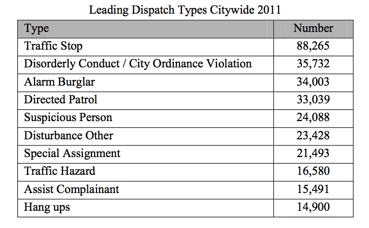 Here's a list of the most common dispatch events recorded by APD in 2012 (including CFS and self-initiated events logged into the dispatch system):