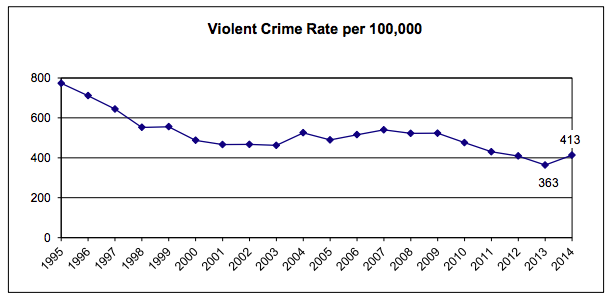 Austin's violent crime rate trend via the APD Annual Report for 2014