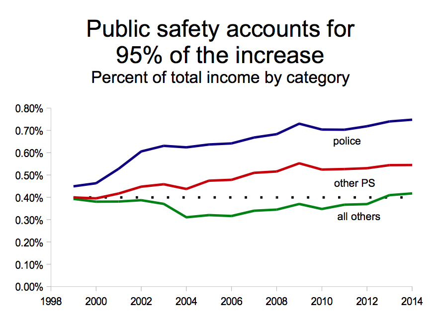 The City's general fund spending has increased faster than the median income. And most of that increase is the result of police department spending, according to former Council Member Bill Spelman's analysis (PDF).